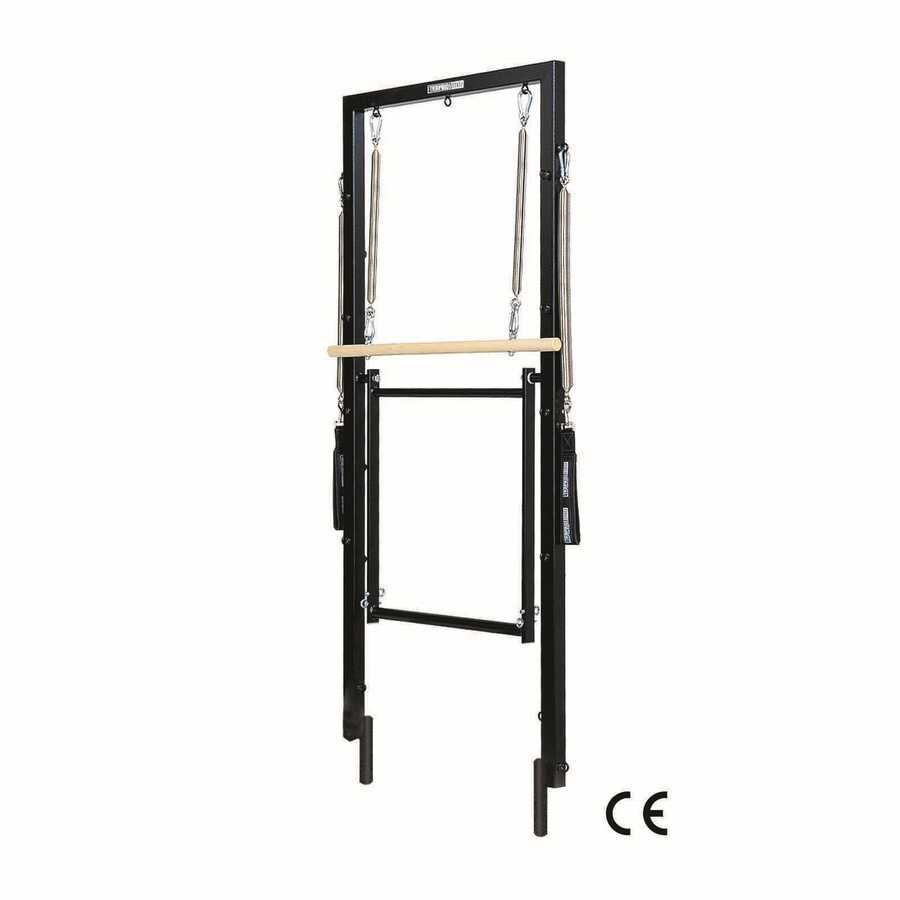 Dikey Çerçeve ekleyerek Reformer'ınızı sanal bir Cadillac/Trapeze Masasına dönüştürün. Sağlam çelik çerçeve, Reformer raylarındaki yuvalara kolayca oturur ve çok işlevli kullanım sağlar.